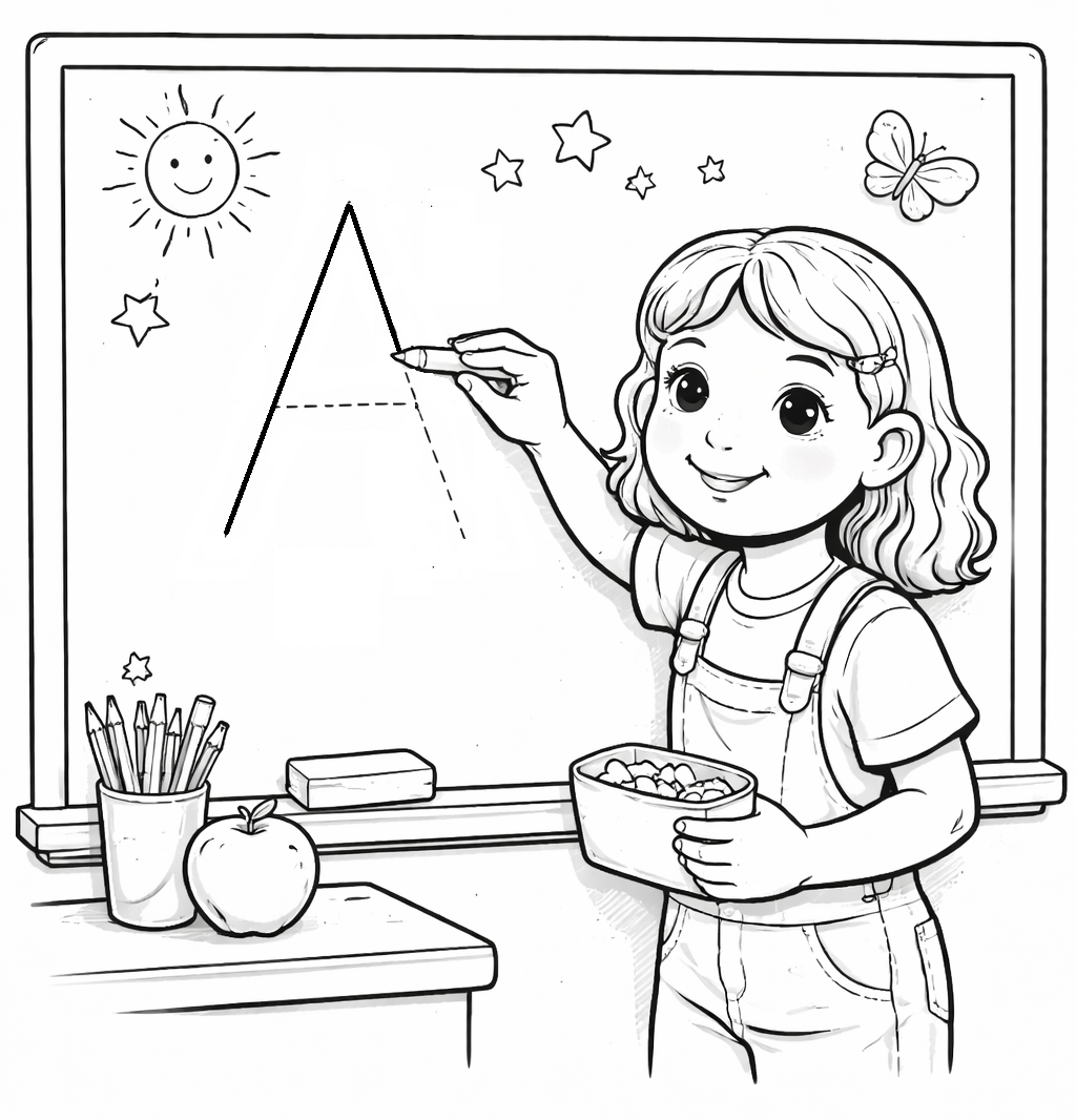 nachspuren, ausmalen und Buchstaben entdecken.